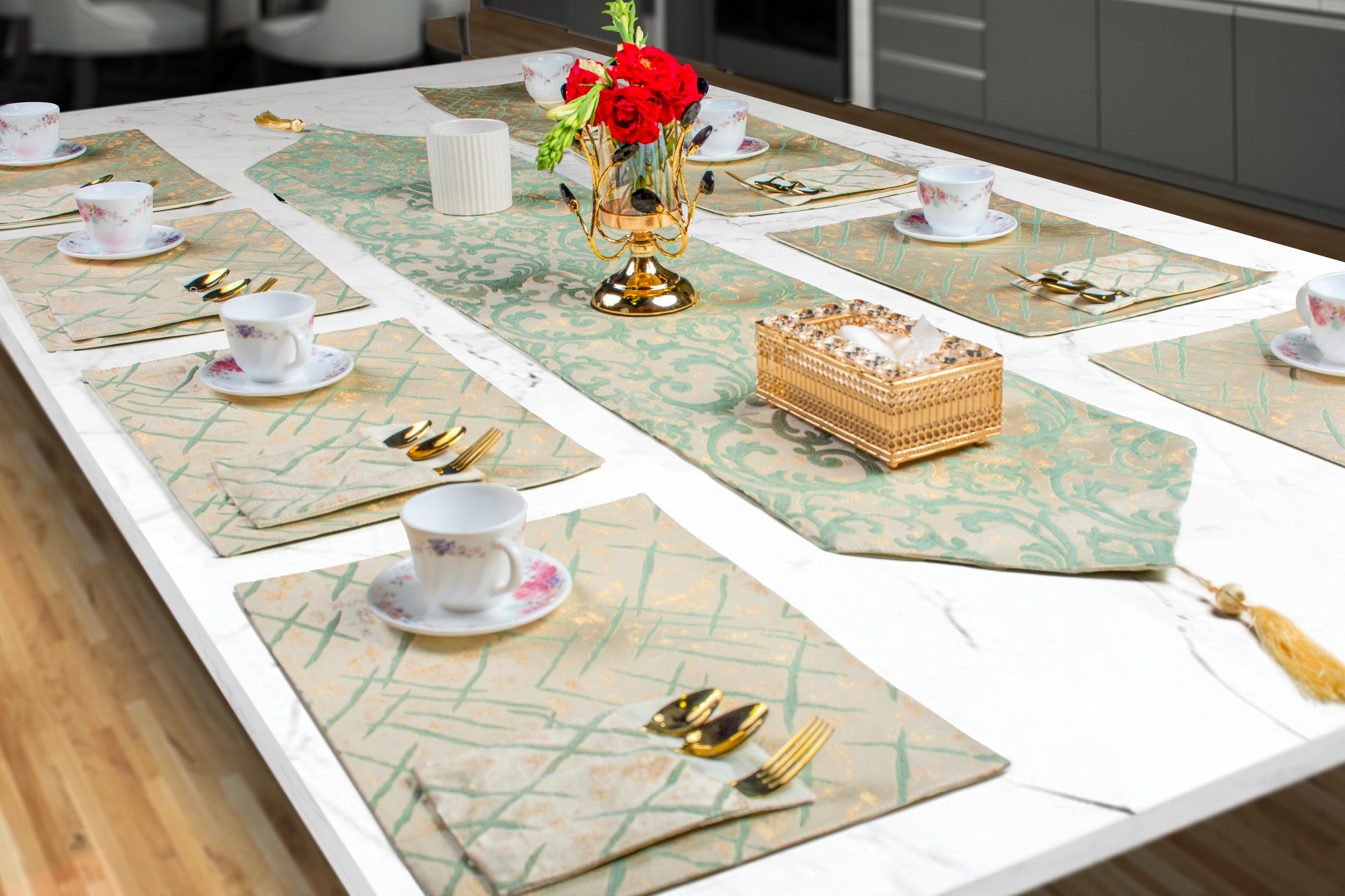 Frosted Green Filigree Table Runner