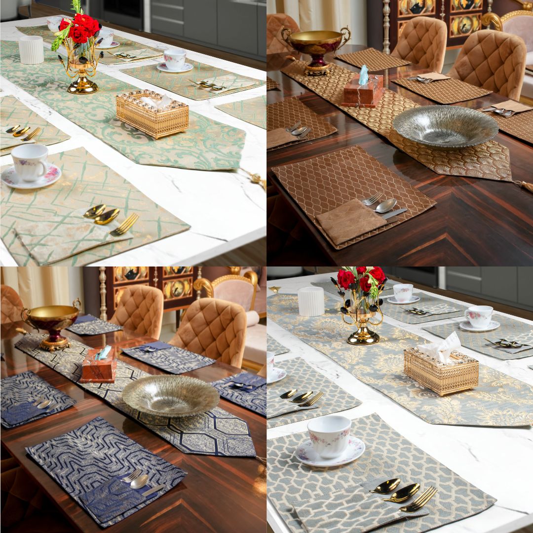 Camilla Gold Embossed Textured Table Set - Set of 8 / With Holders