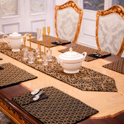 Monarch Black Gold Embossed Table Set - Set of 8 / With Holders